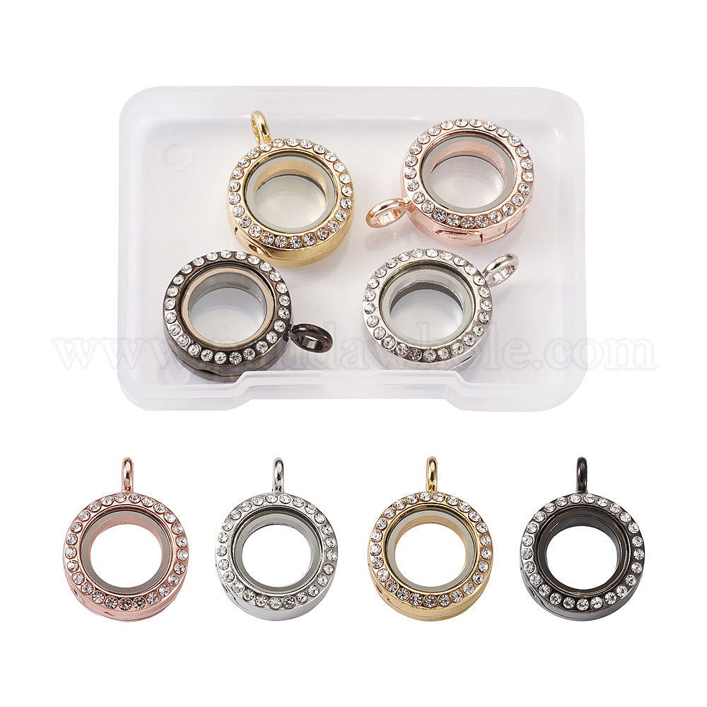 4 шт 4 цвета сплава стекла хрустальные подвески со стразами, аксессуары для изготовления ювелирных кулонов своими руками, плоско-круглые