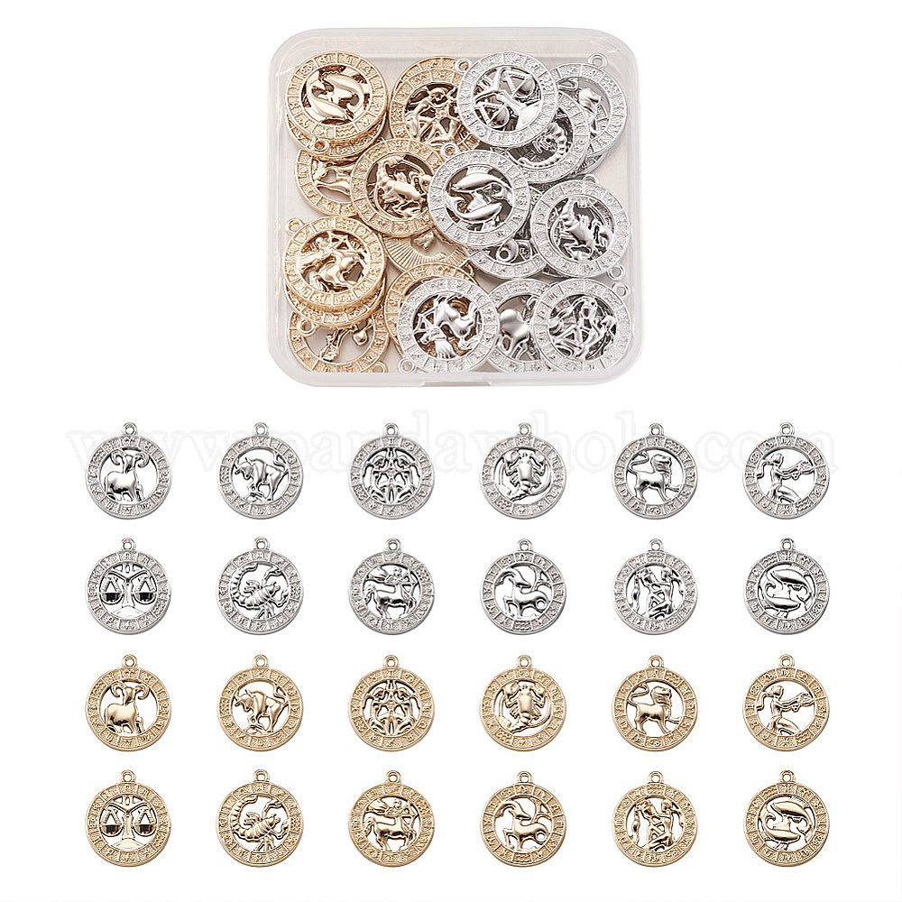 2 наборы 2 цвета цинковый сплав ювелирные изделия подвески аксессуары, плоские круглые с двенадцати созвездий, платина и светлое золото