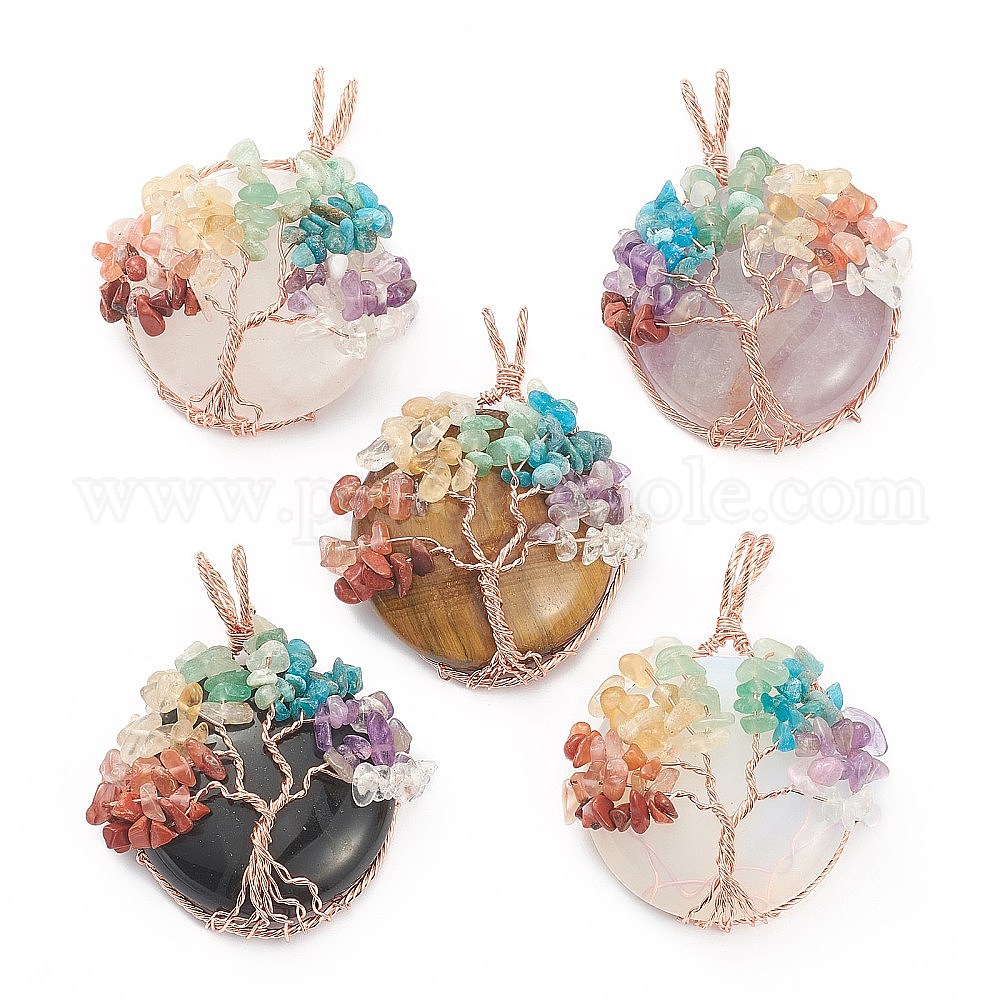 Кулоны из драгоценных камней с фурнитурой из розового золота и латуни со смешанной каменной крошкой, полукруглые / купольные
