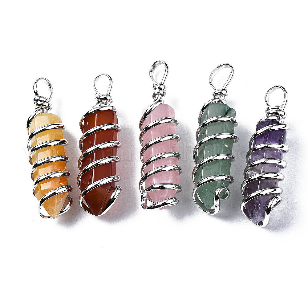 Натуральный и синтетический драгоценный камень большие подвески, проволочные подвесные подвески, с проволокой из платиновой латуни, стойки покрытие, карандаш