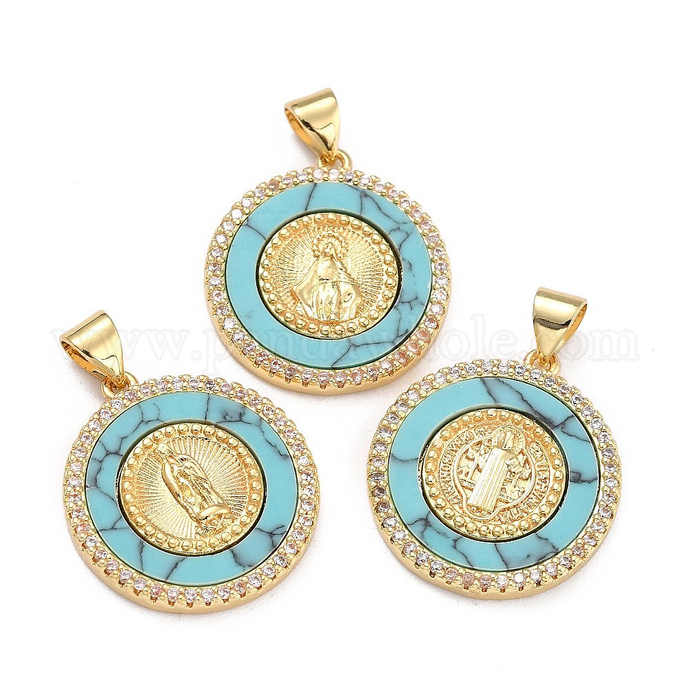 Латунные микро проложить кубического циркония подвески, С камнями, реальный 18 k позолоченный, плоский круглый с рисунком рамдона