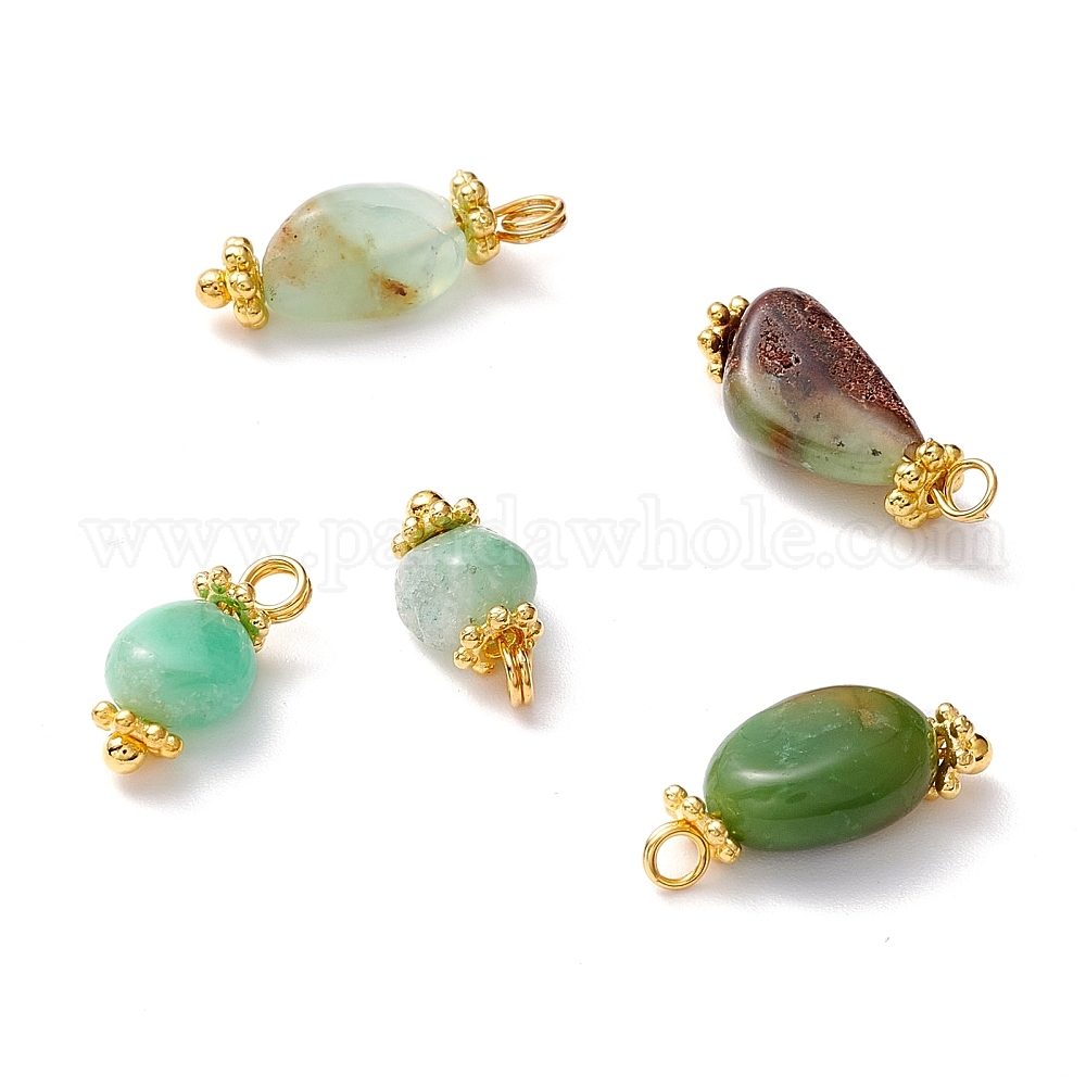 Подвески из натурального хризопраза, с латунным штифтом для глаз и прокладками в виде ромашек из сплава, золотые, самородки