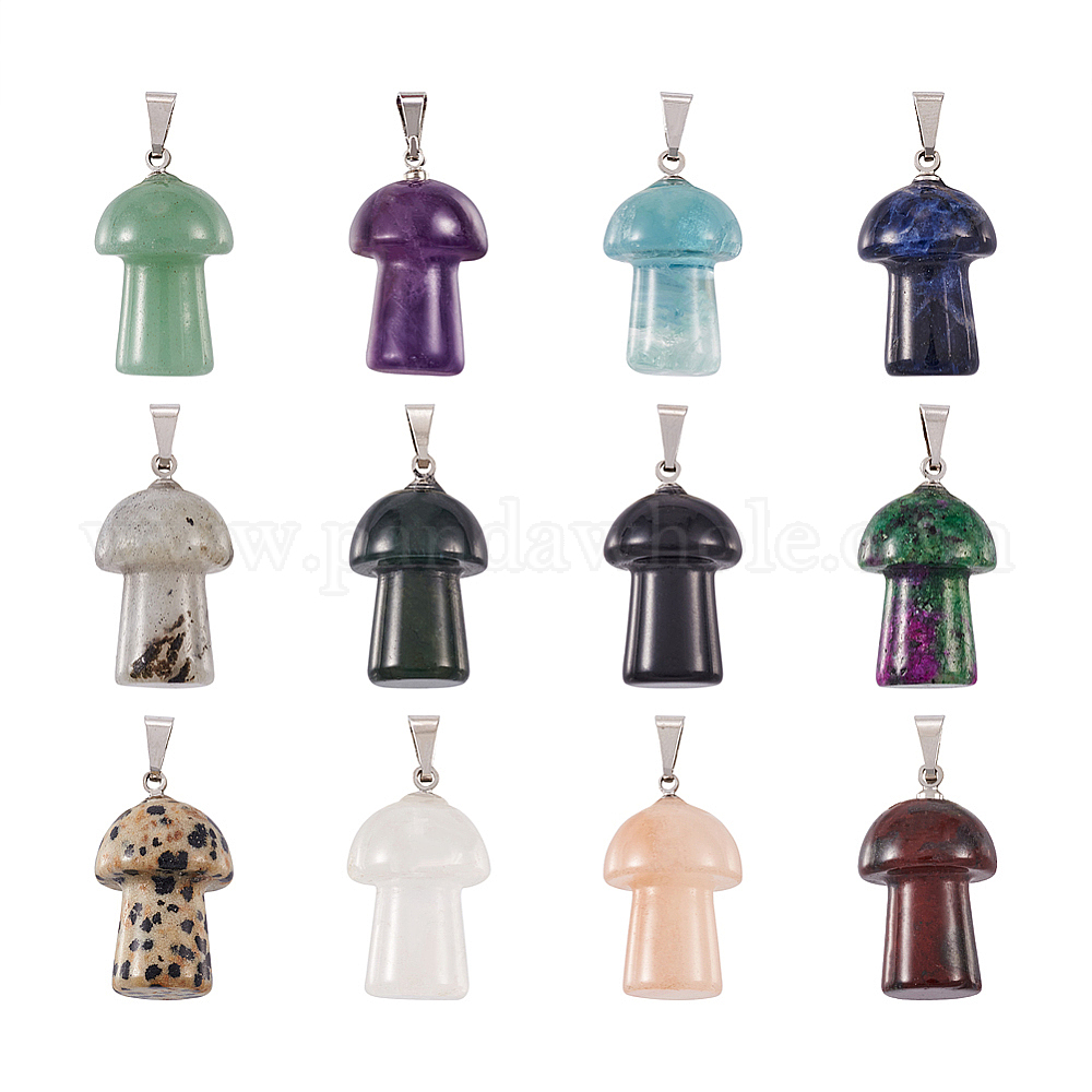 Подвески из натуральных драгоценных камней в виде грибов: 1.16x0.55 дюйм (29.5x14 мм), отверстие: 0.09 дюйм (2.4 мм), 12 стиль, 1 шт / стиль, 12 шт;