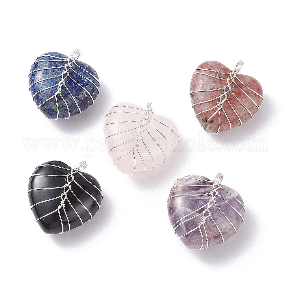 Природных драгоценных камней подвески, с обернутой медной проволокой серебристого цвета, сердце
