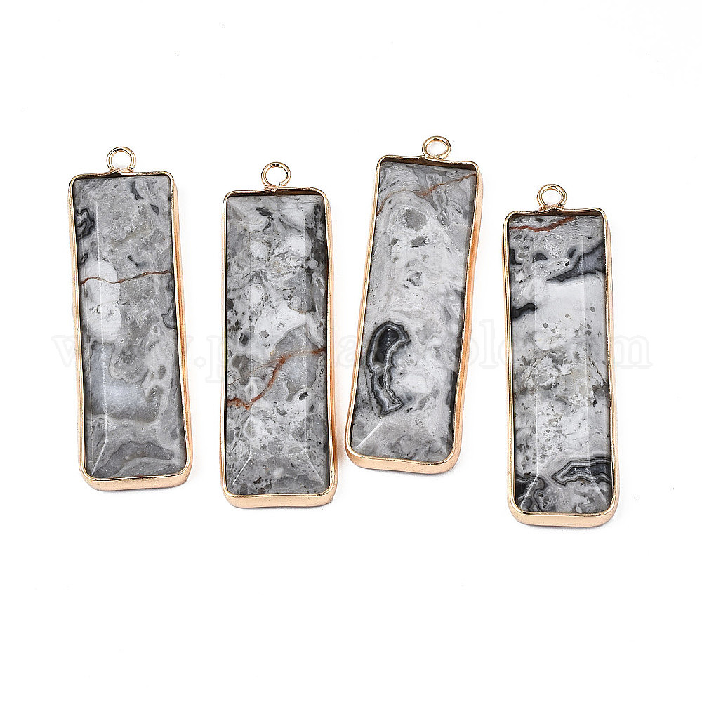 • Камень Карты Кулоны из натурального камня, с фурнитурой латунной золотого тона, прямоугольные, 48~49x13x4~5 мм, отверстие : 2.5 мм