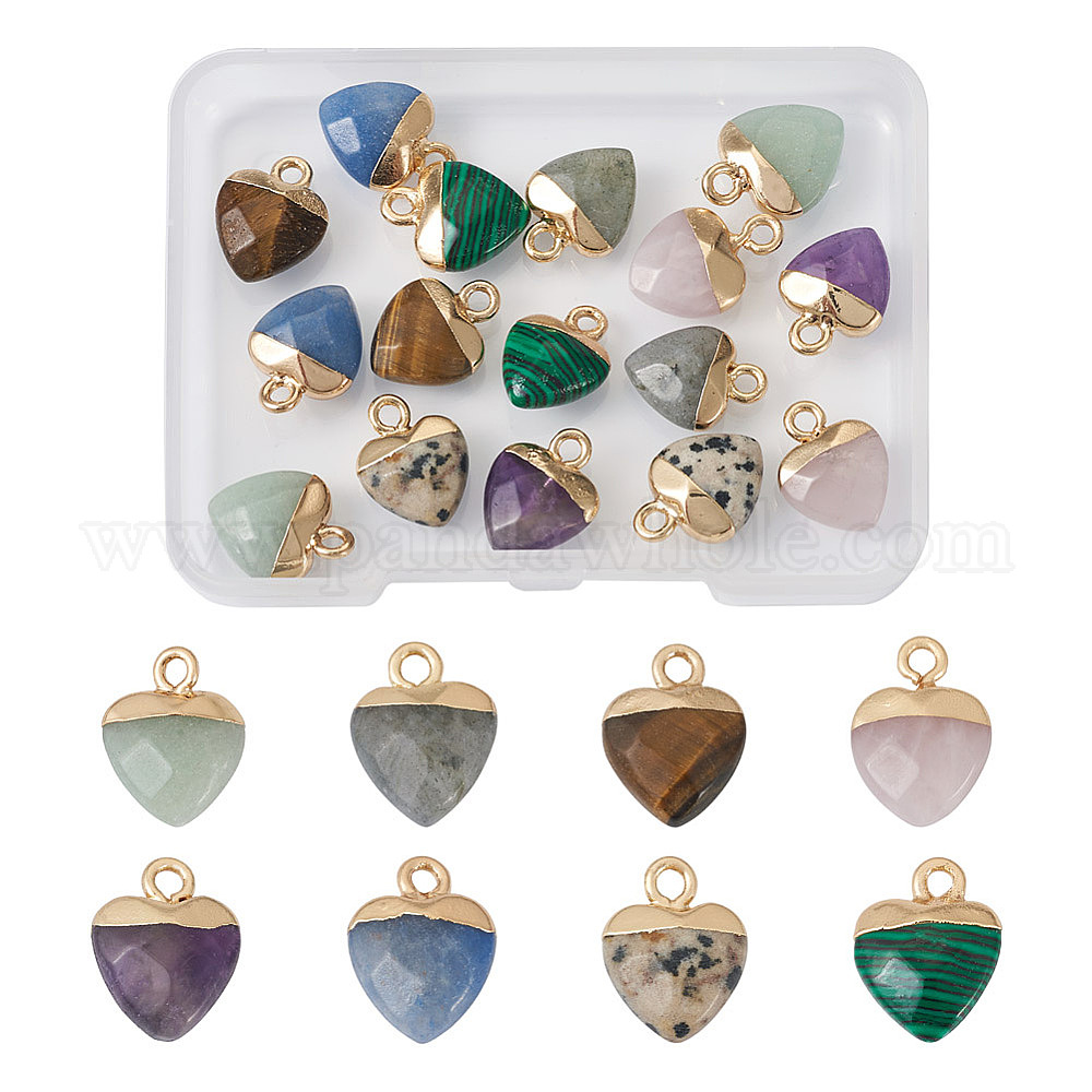 16шт 8 стили подвески из натуральных и синтетических драгоценных камней, с легкими позолоченными железами, сердце (02DPCT)