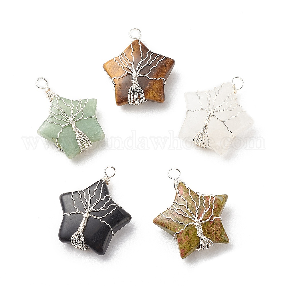 Драгоценный камень подвески, с обмоткой из медной проволоки, звезда с деревом