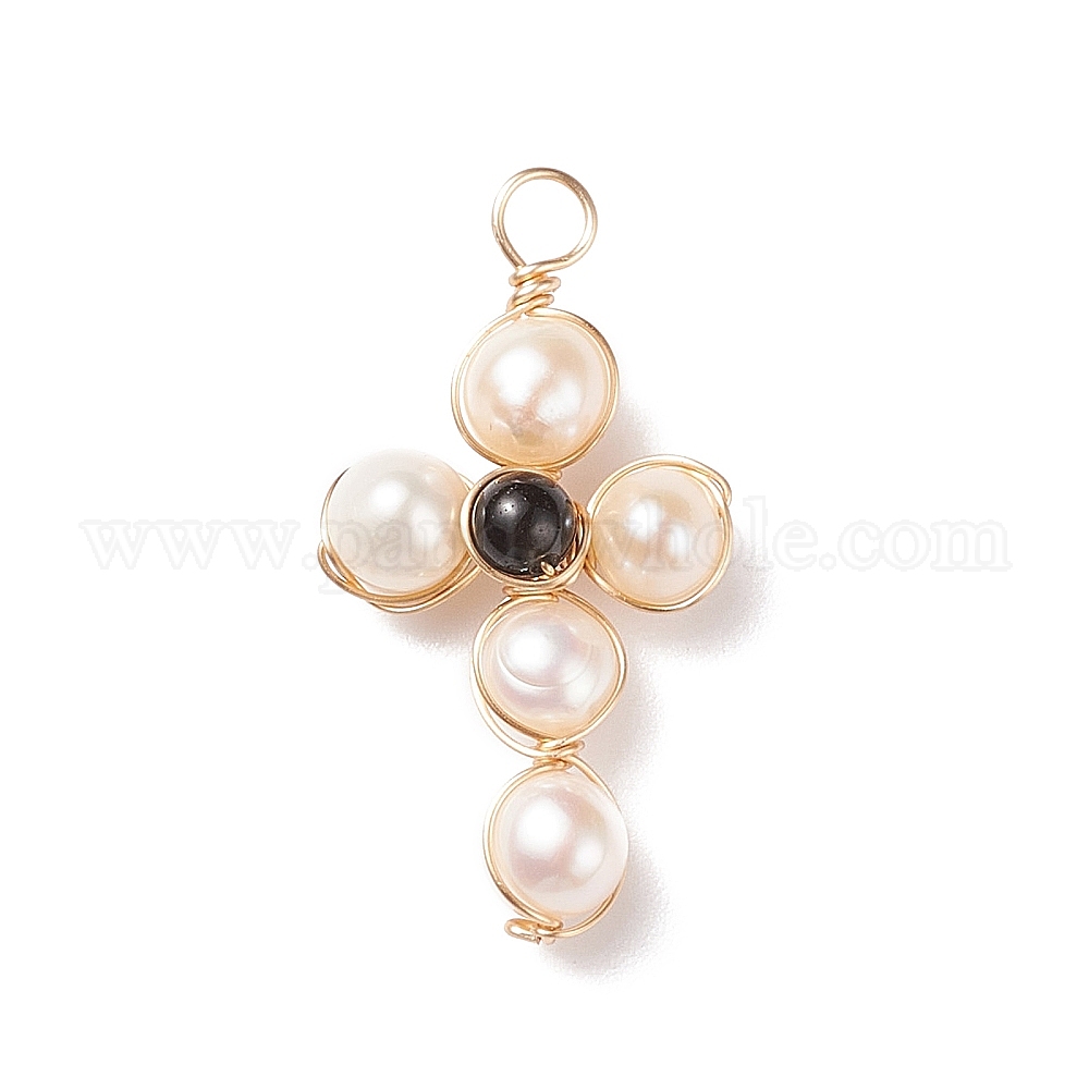 Подвески из натуральных драгоценных камней и белого пресноводного жемчуга, с настоящей позолоченной медной проволокой 18k, крестик