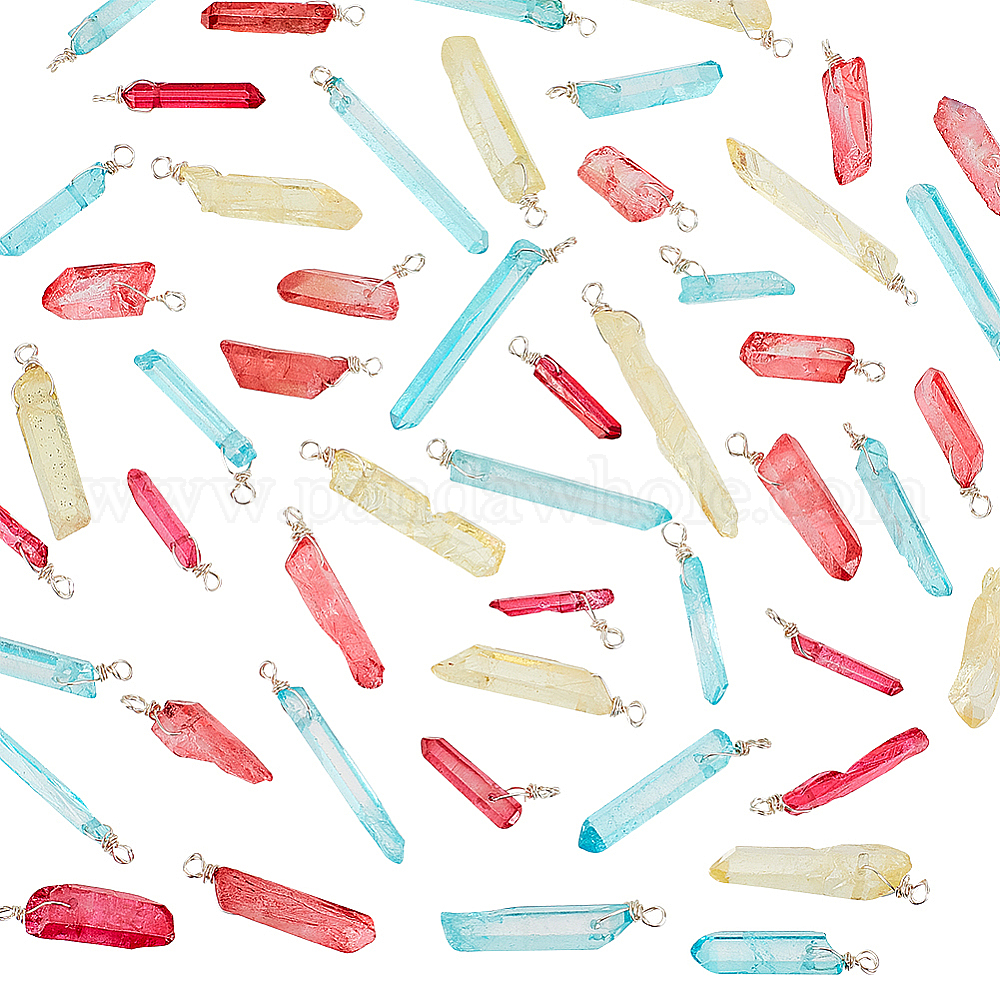 50шт. подвески из натурального кварца окрашенные, с обмоткой из медной проволоки, разноцветные, чип шарм
