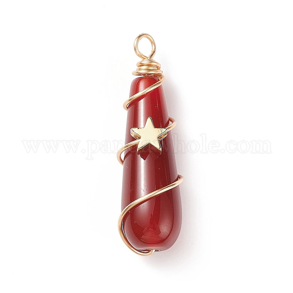 Крашеные природные сердолик подвески, с фурнитурой латунной золотого тона, очарование слезы