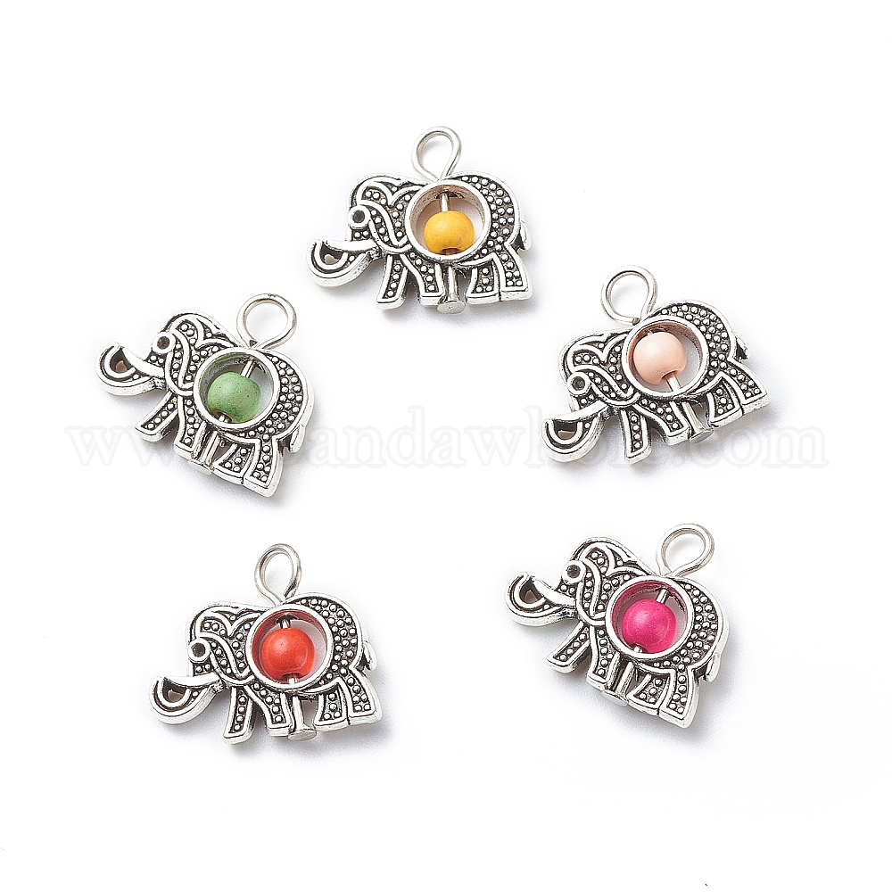 • Слон Антикварная посеребренные легкосплавные синтетические бирюзовые подвески, окрашенные, Рисунок с изображением слона, 15.5x18x4 мм, отверстие : 3 мм