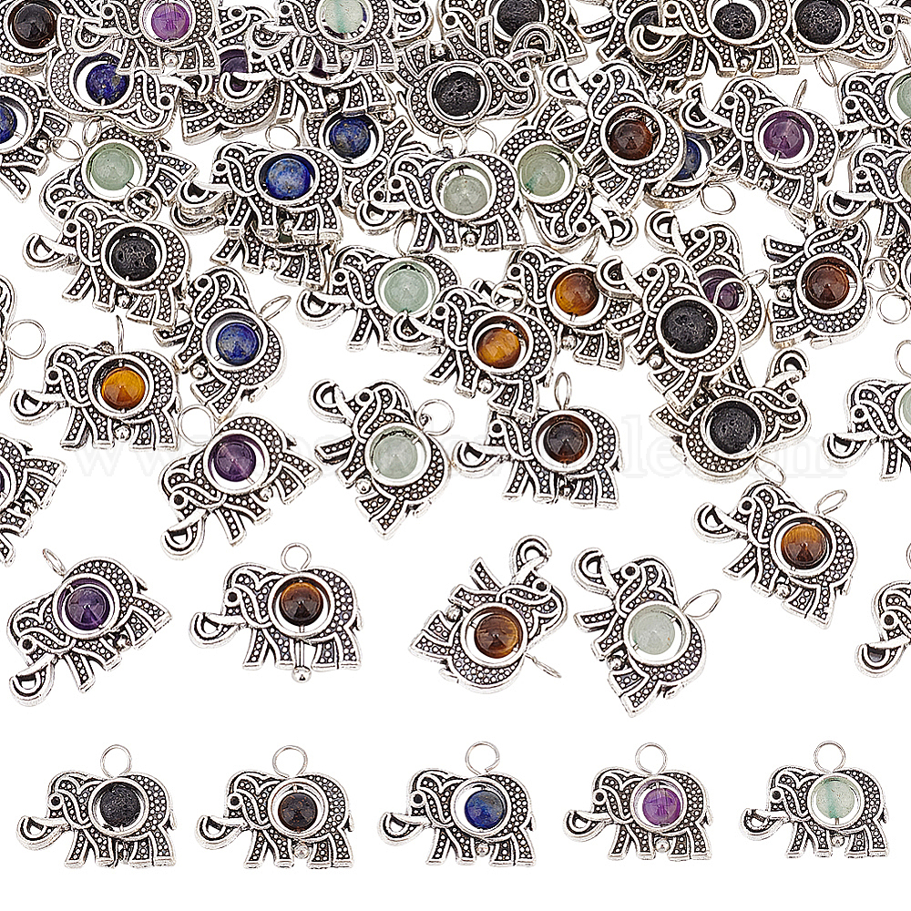 50шт. подвески из натурального смешанного камня, очарование слона, со сплавочной фурнитурой античного серебряного тона, смешанные окрашенные и неокрашенные