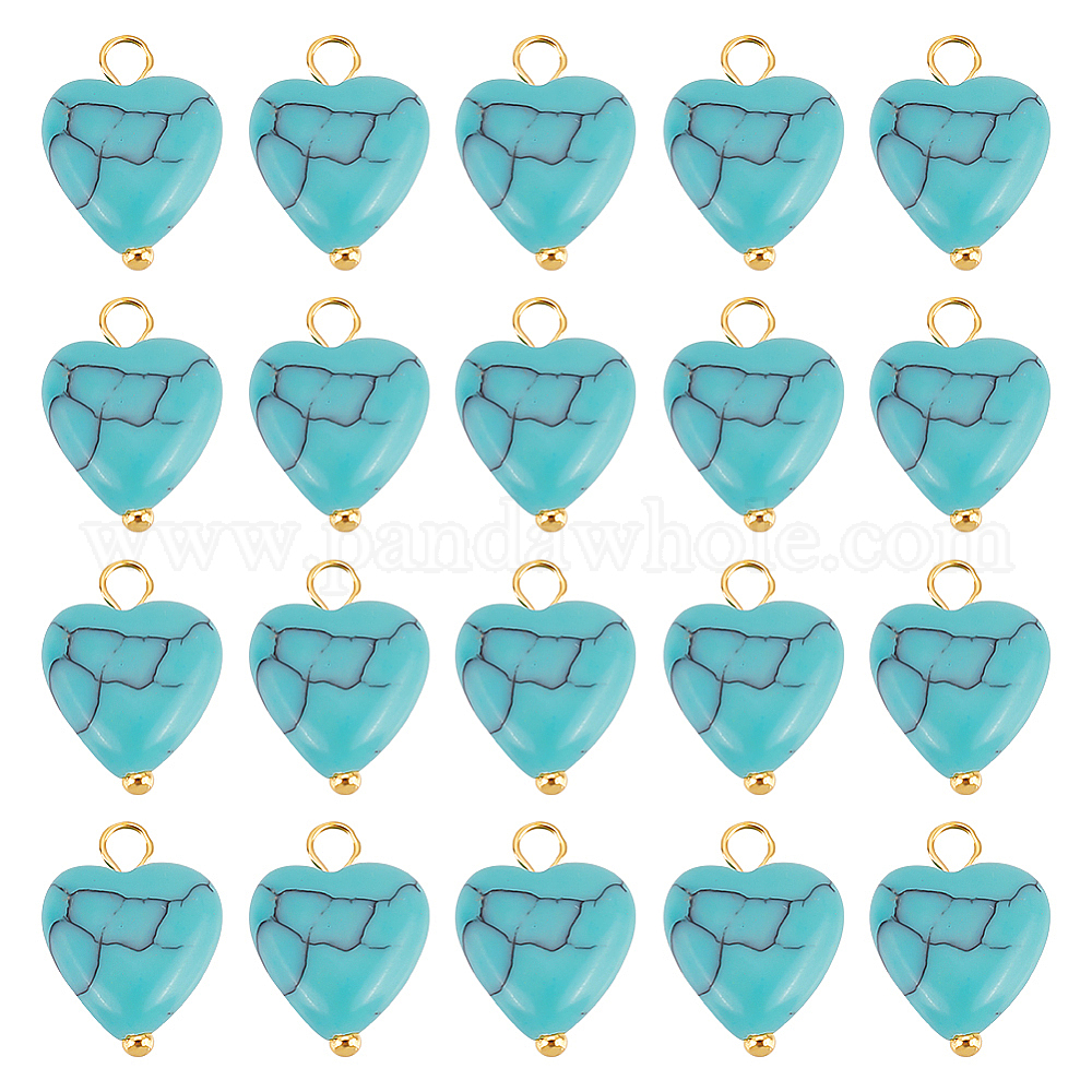50Подвески из искусственной бирюзы шт., шарма сердца, с золотыми латунными штифтами с шаровой головкой