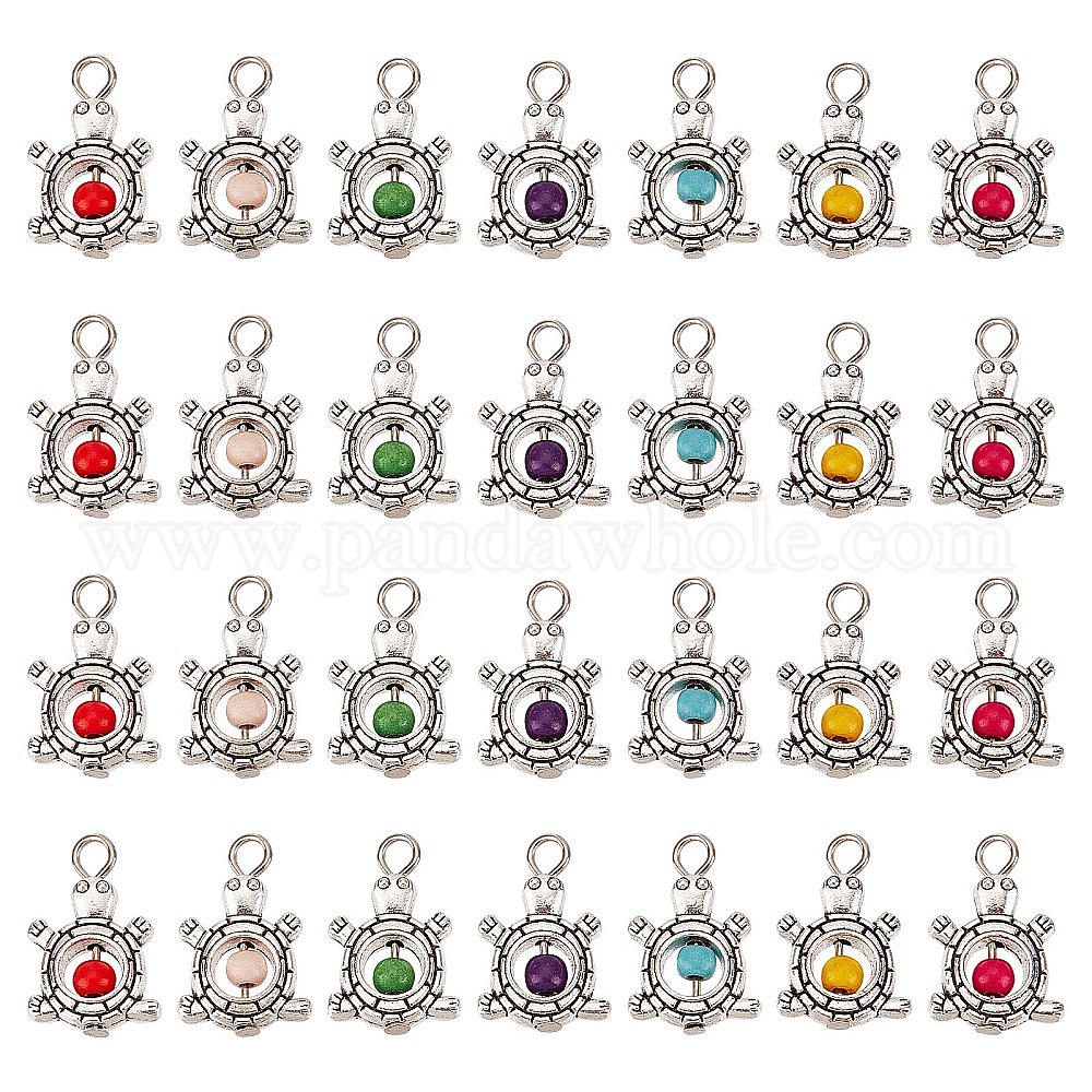 Сделай сам 50шт. старинные посеребренные сплавы синтетическая бирюза подвески, черепаховый шарм, окрашенные