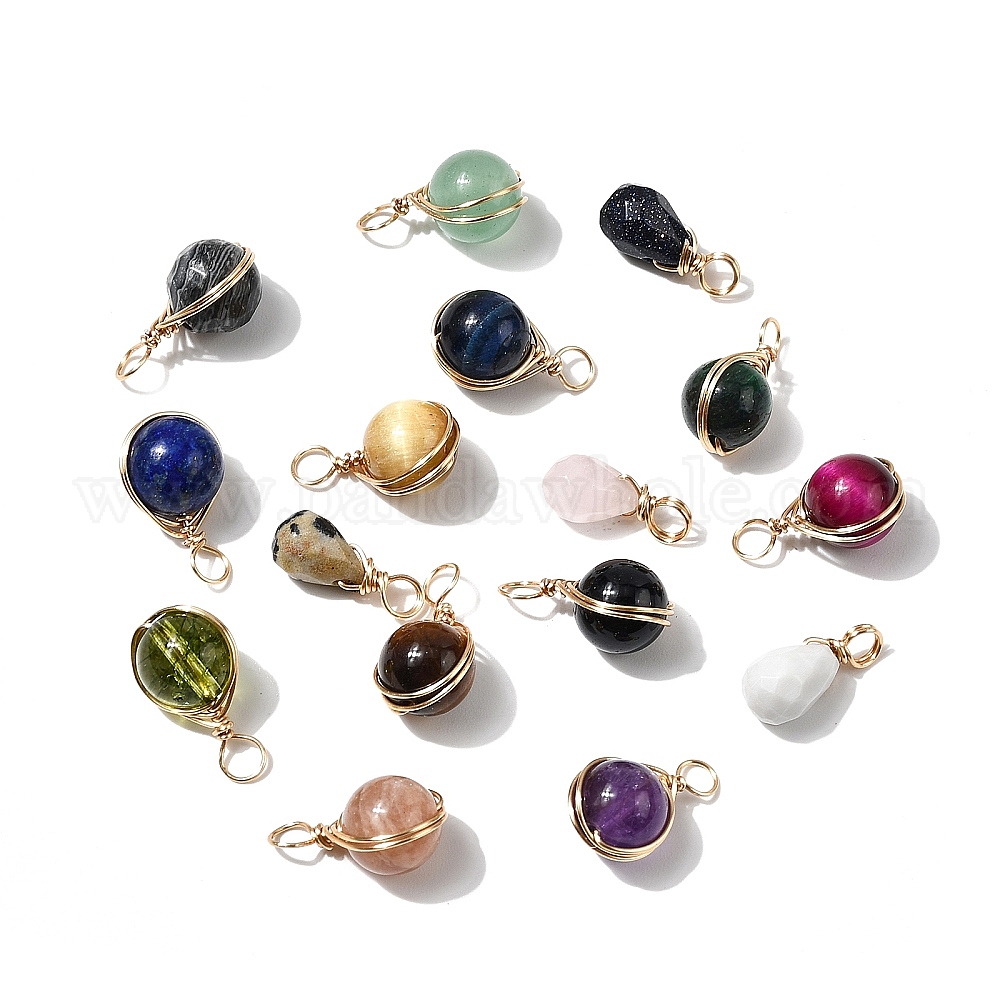 16 шт 16 стили смешанные подвески с драгоценными камнями, каплевидные и круглые подвески, с настоящей позолоченной медной проволокой 18k, смешанные окрашенные и неокрашенные