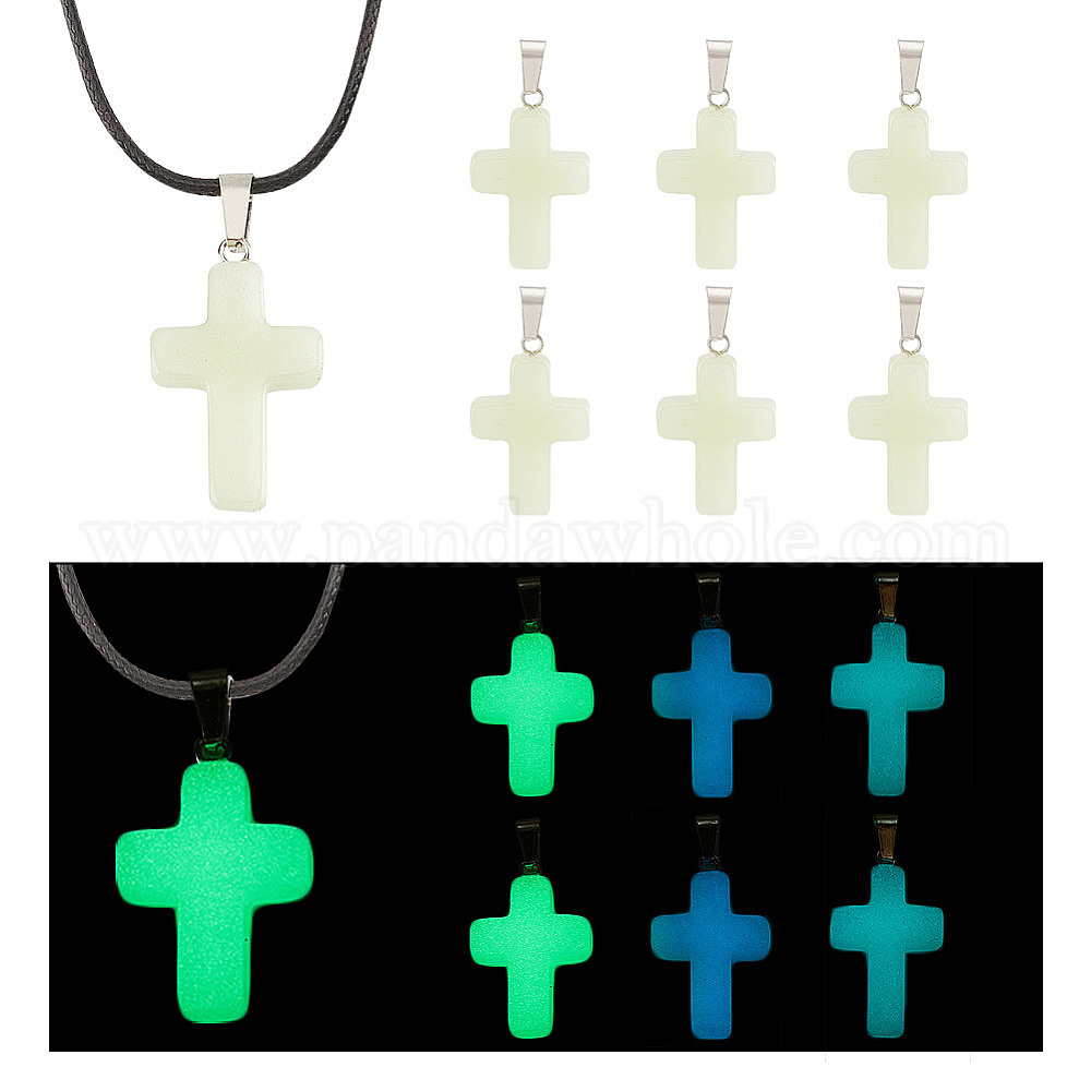 12шт 3 эффекты синтетические светящиеся камни подвески, религия крест очарование, с фурнитурой сплавочной платины тон