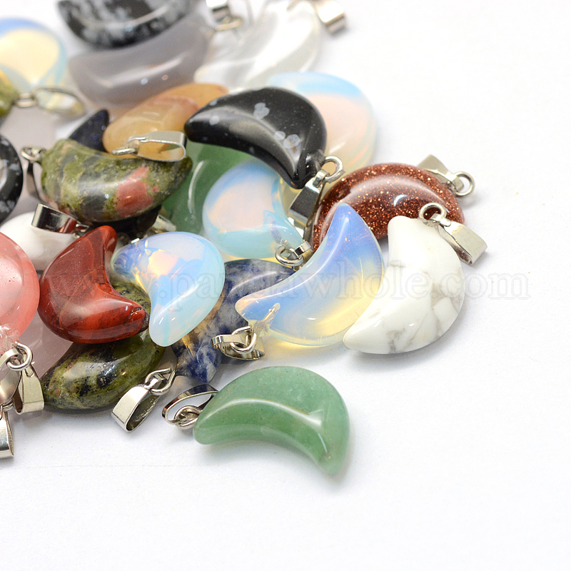50 подвески из смешанных драгоценных камней, Луна прелести, с латунной фурнитурой платинового цвета, смешанные окрашенные и неокрашенные