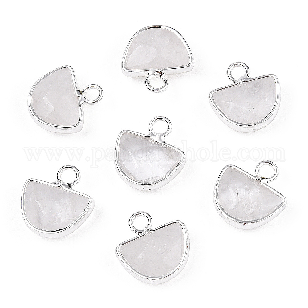 Полукруглые подвески из натурального кварца, граненые полукруглые подвески, с посеребренными латунными выводами