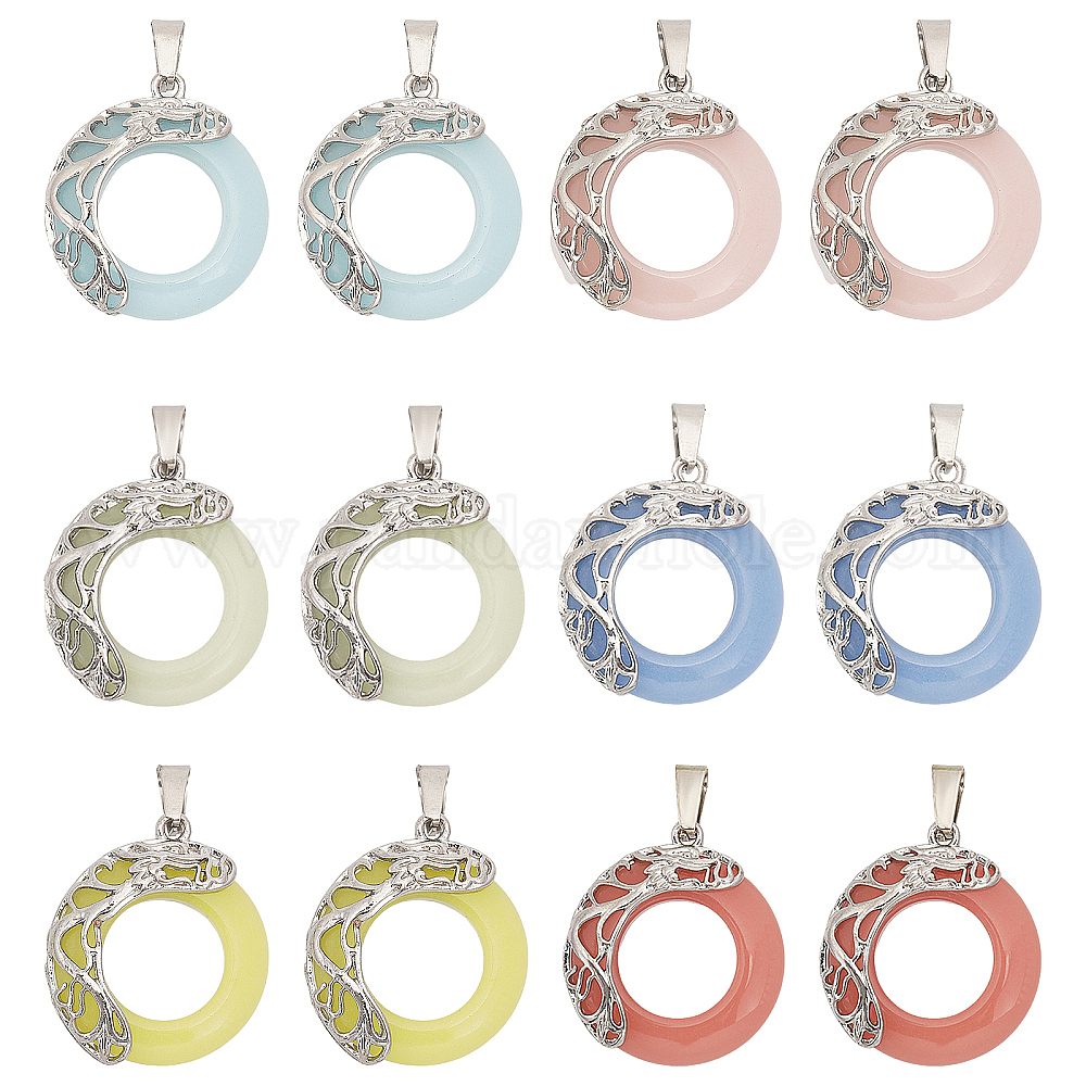 12шт 6цвета синтетические светящиеся камни подвески, светится в темноте, подвески в виде пончиков дракона из сплава с платиновым покрытием, окрашенные