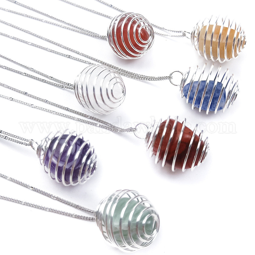 Подвески в виде фонариков из натуральных драгоценных камней, овальные амулеты, с выводами клетки из сплава с платиновым покрытием