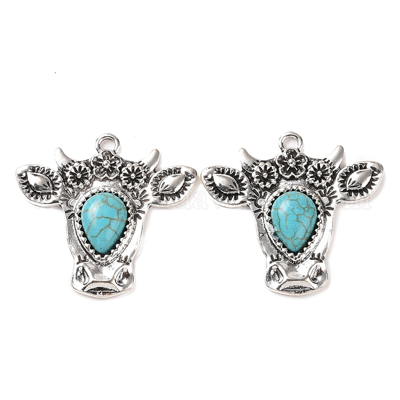 Синтетические бирюзовые подвески, крупный рогатый скот прелести, со сплавочной фурнитурой
