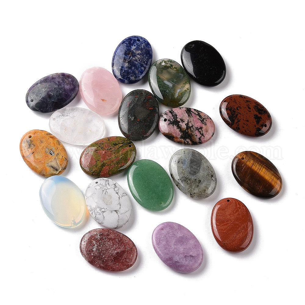 Cmешанные подвески драгоценных камней, плоские овальные подвески