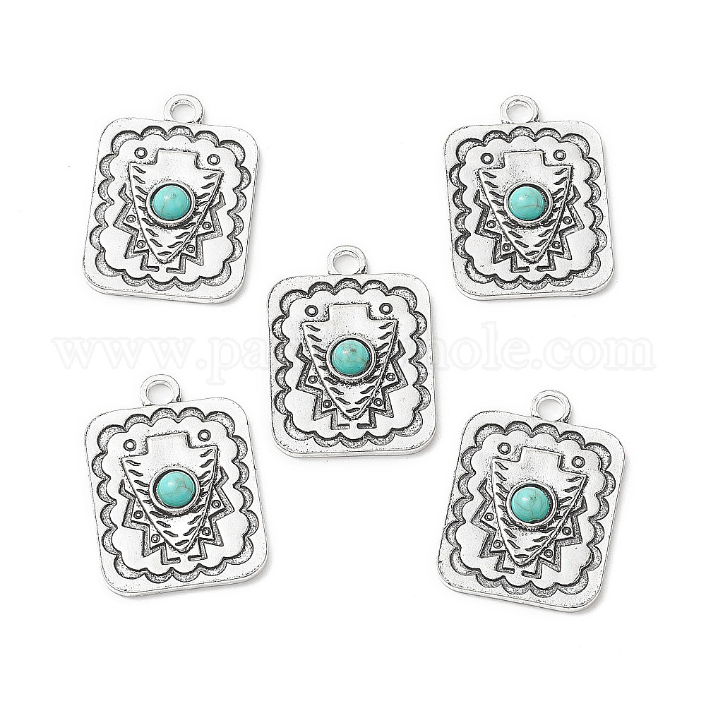 Синтетические бирюзовые подвески, со сплавочной фурнитурой, прямоугольные подвески со щитом (02HZDQ)