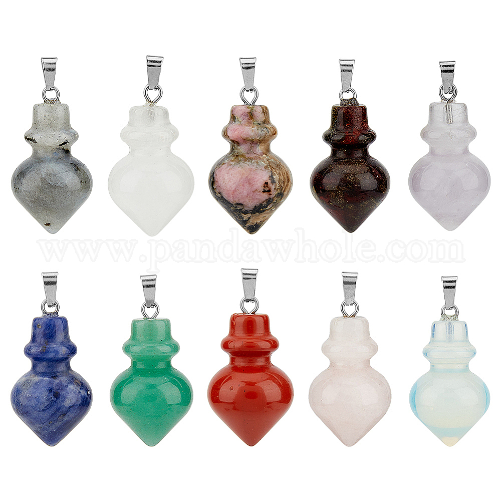 10шт 10 стили подвески с драгоценными камнями, остроконечные подвески для бутылок, с платиновым покрытием железа оснастки на поруки