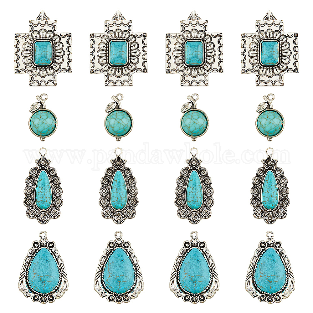 16 шт 4 стили подвески из сплава, с синтетическими бирюзовый, вишня и крест и слеза