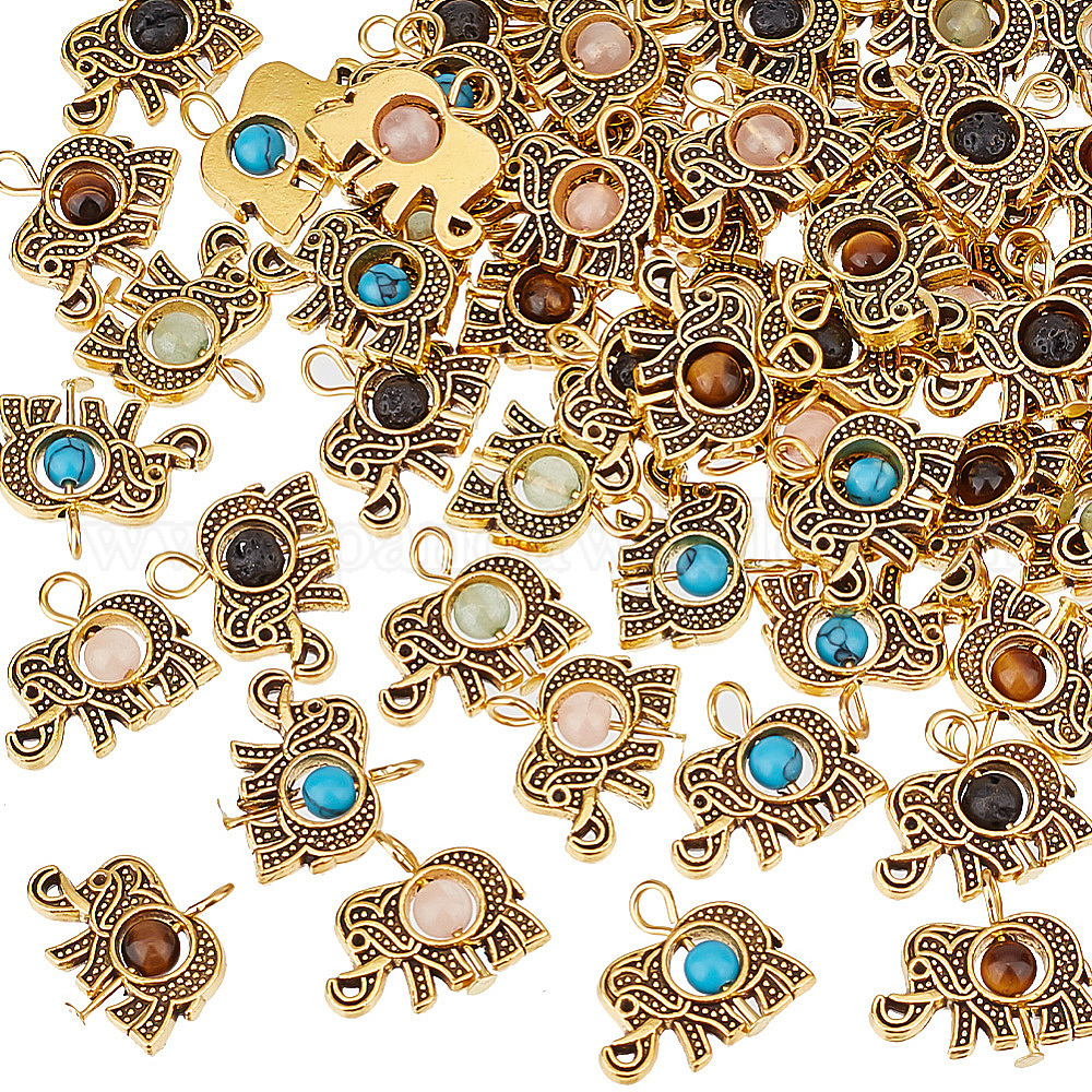60 подвески из смешанных драгоценных камней, животное очарование, с фурнитурой из сплава в тибетском стиле и железными петлями, смешанные окрашенные и неокрашенные