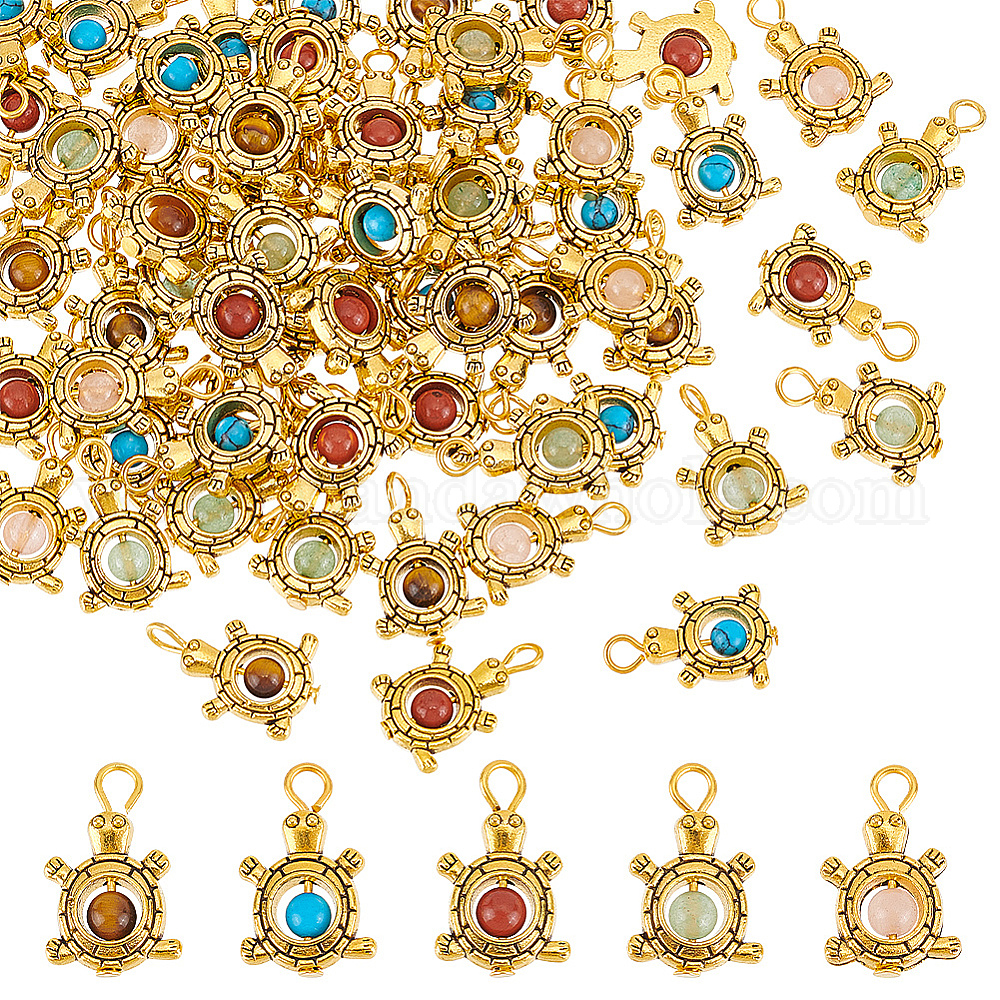 60 подвески из смешанных драгоценных камней, животное очарование, со старинной позолоченной фурнитурой из сплава в тибетском стиле и железными петлями, смешанные окрашенные и неокрашенные