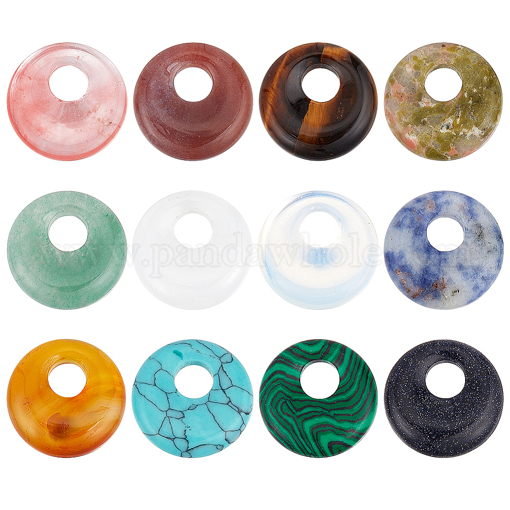 12 шт 12 стили подвески из натуральных и синтетических драгоценных камней, пончик / пи-диск