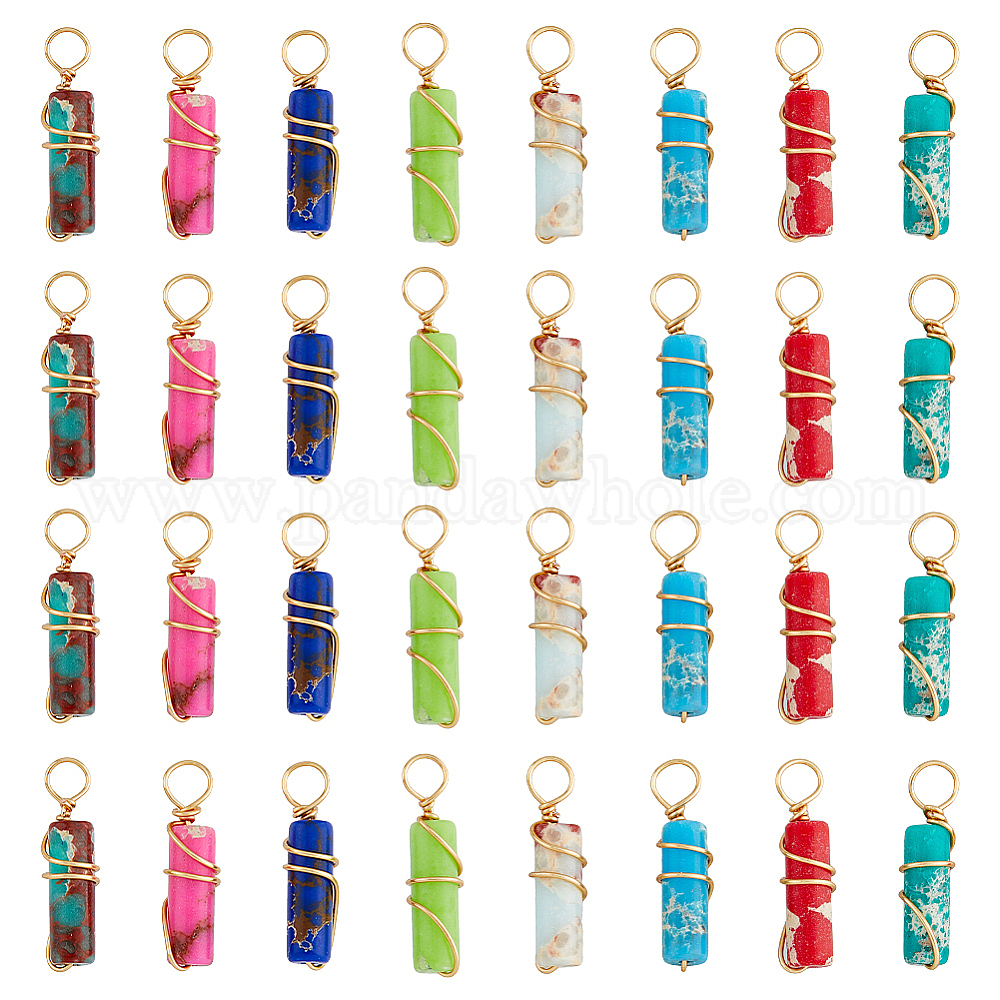 40 шт. 8 окрашенные в цвета подвески из синтетической императорской яшмы, колонка прелести, с позолоченной медной проволокой