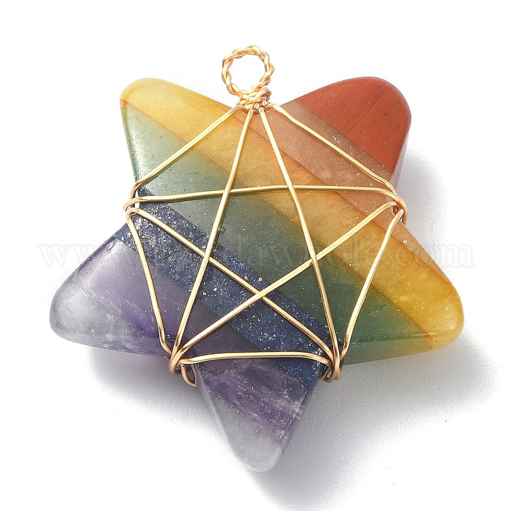 7 подвески из медной проволоки с драгоценными камнями чакры, подвески-звезды из натуральных смешанных камней