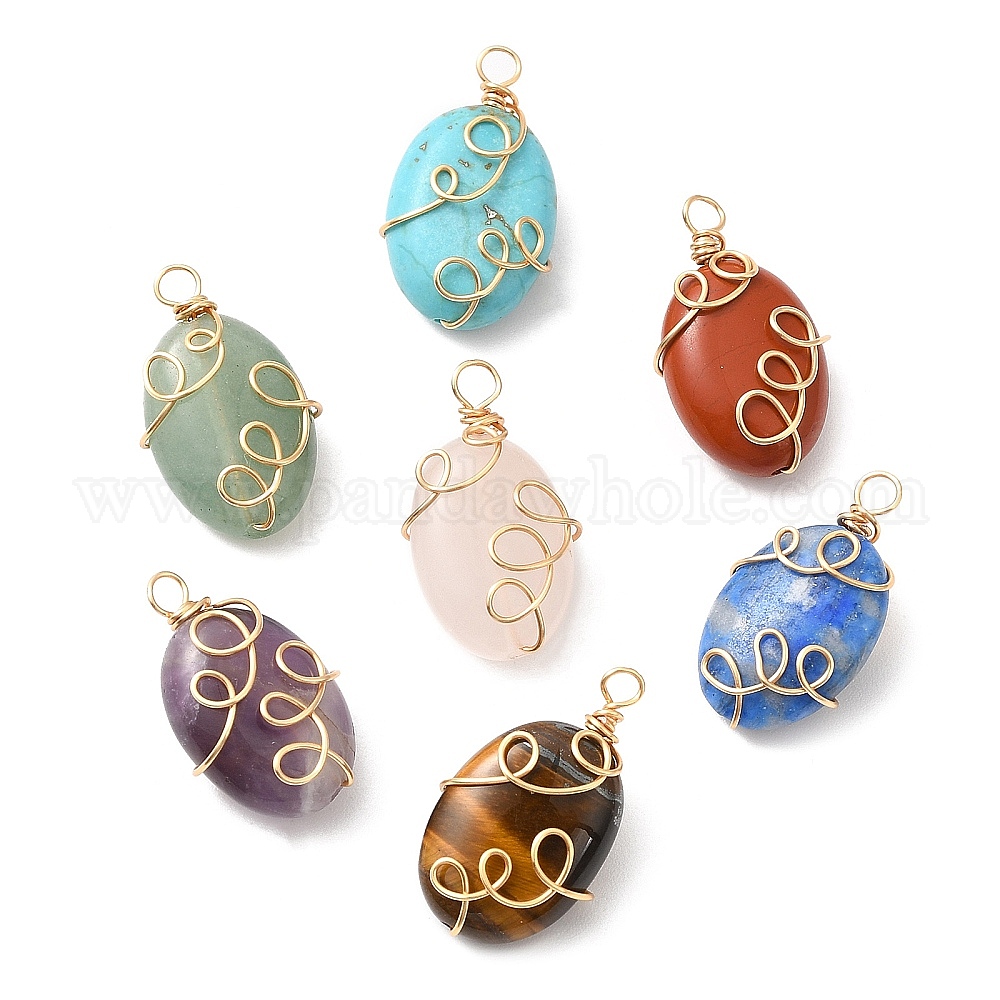 7подвески из медной проволоки из смешанных натуральных камней, овальные амулеты, золотой свет