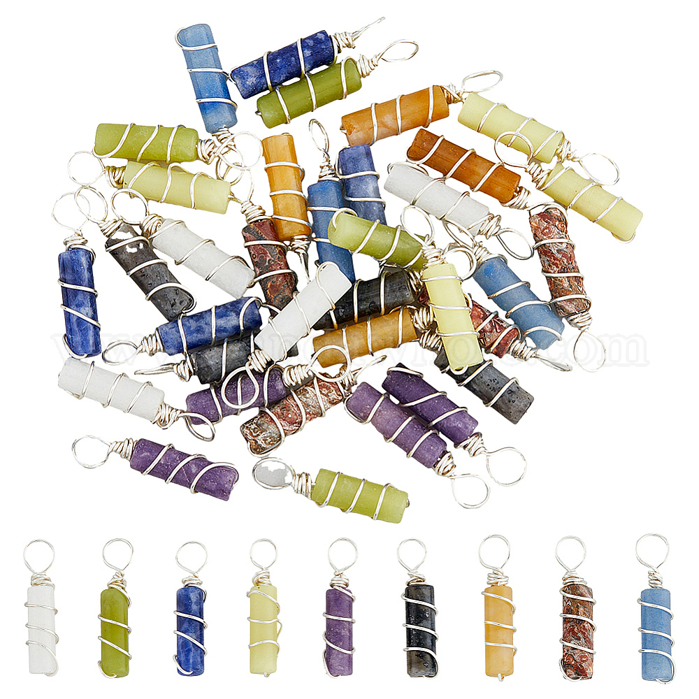 36 шт 9 стили природных смешанных драгоценных камней подвески, подвески в виде колонн из посеребренной латунной проволоки