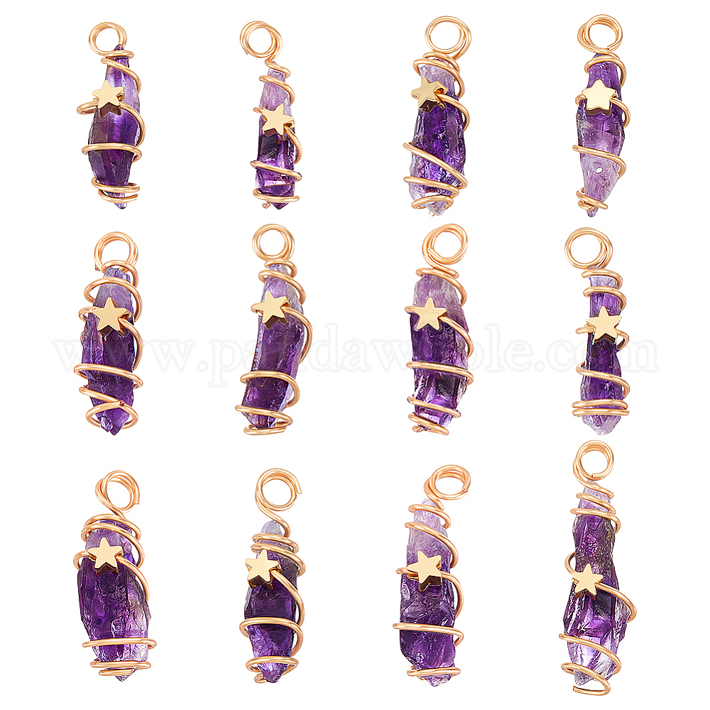 12Подвески из медной проволоки из натуральных драгоценных камней, самородки очарование, золотые