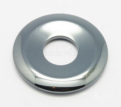Немагнитные синтетические гематит подвески, пончик / пи-диск, ширина пончика: 16 мм, 40x5.5 мм, отверстие : 8 мм