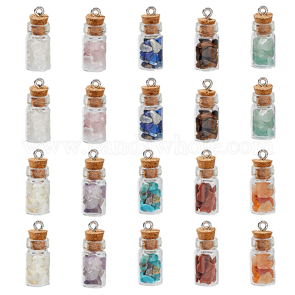 • Смешанные камни 40 шт. 10 цвета, подвески из натуральных и синтетических драгоценных камней со смешанными камнями, Подвески в виде прозрачных стеклянных бутылок с драгоценными камнями и железными петлями платинового цвета, 25x10 мм, отверстие : 2 мм, 4 шт / цвет
