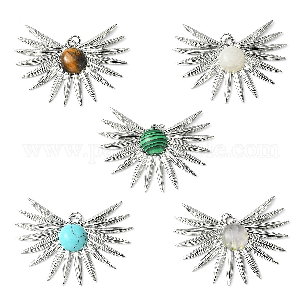Cmешанные подвески драгоценных камней, 304 подвески-крылья из нержавеющей стали с переходными кольцами