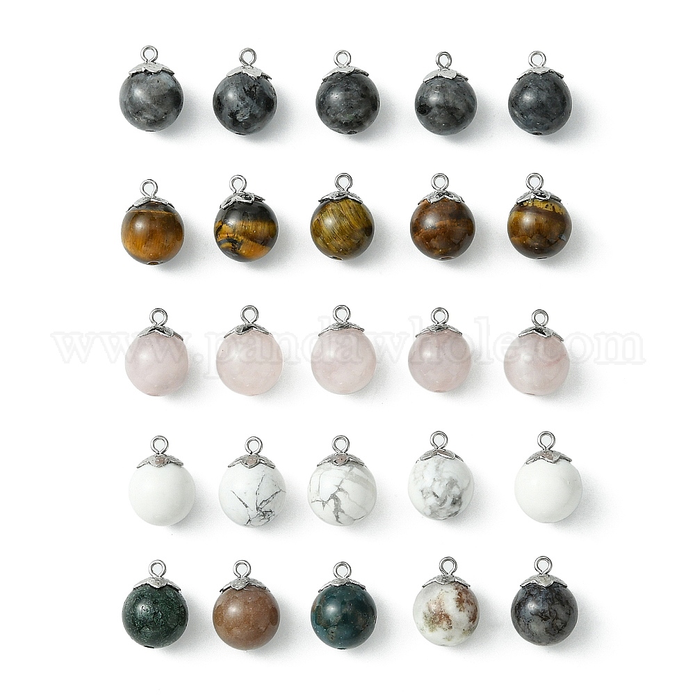 Натуральный смешанный камень кулон, с 201 подвесками-подставками для чашек из нержавеющей стали, круглые