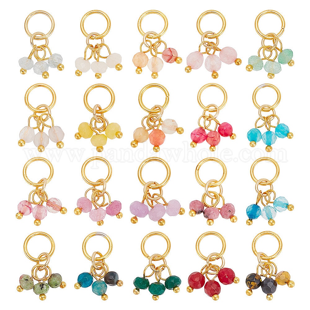 • Золотой 80 шт 20 стили природных смешанных драгоценных камней подвески, подвески с драгоценными камнями, круглые и круглые, позолоченное, 304 с открытым прыжковым кольцом из нержавеющей стали, смешанные окрашенные и неокрашенные, золотые, 18 мм, 4 шт / стиль