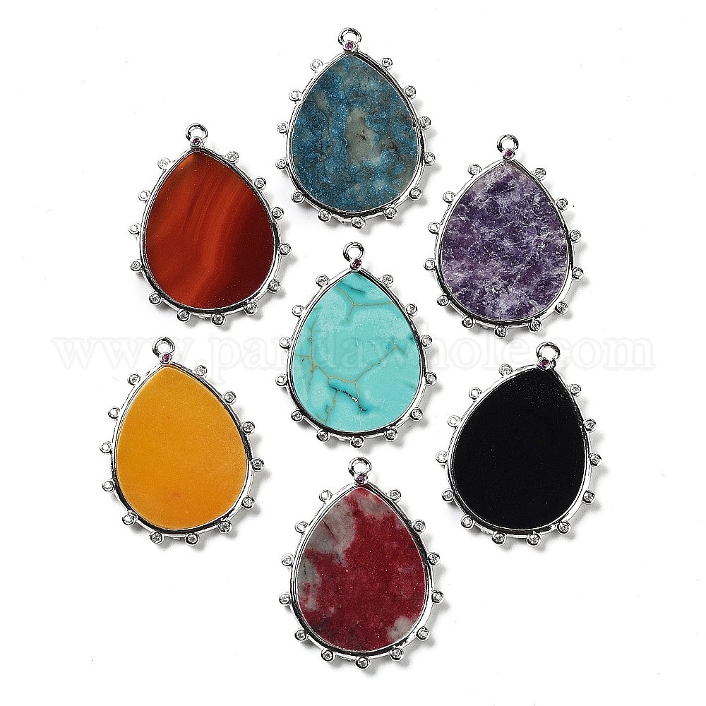• Смешанные камни Природные каменные смешанные подвески, покрытие стойки золотистого цвета, латунное паве, прозрачные подвески-капли из кубического циркония, смешанные окрашенные и неокрашенные, 30.5x23.5x2 мм, отверстие : 1.4 мм