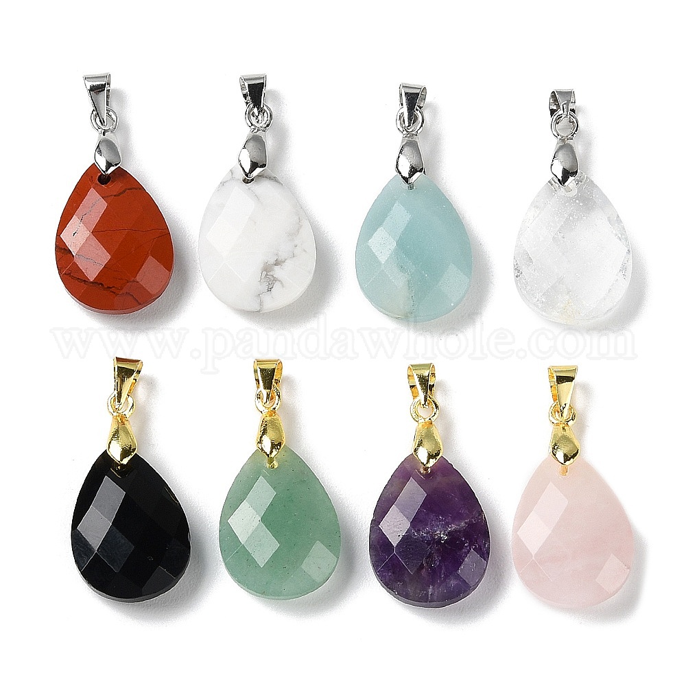 Кулоны с гематоном, слезинки, граненые, с ионным покрытием (IP) выводы из латуни с золотым/платиновым покрытием
