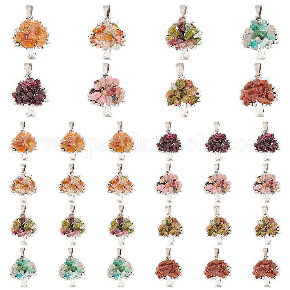 • Смешанные камни 32 шт. 8 подвески в тибетском стиле из натуральных и синтетических камней со смешанными драгоценными камнями, Подвески «Древо жизни» из сплава цвета старинного серебра с защелками из нержавеющей стали 304, 28x24 мм, 4 шт / стиль