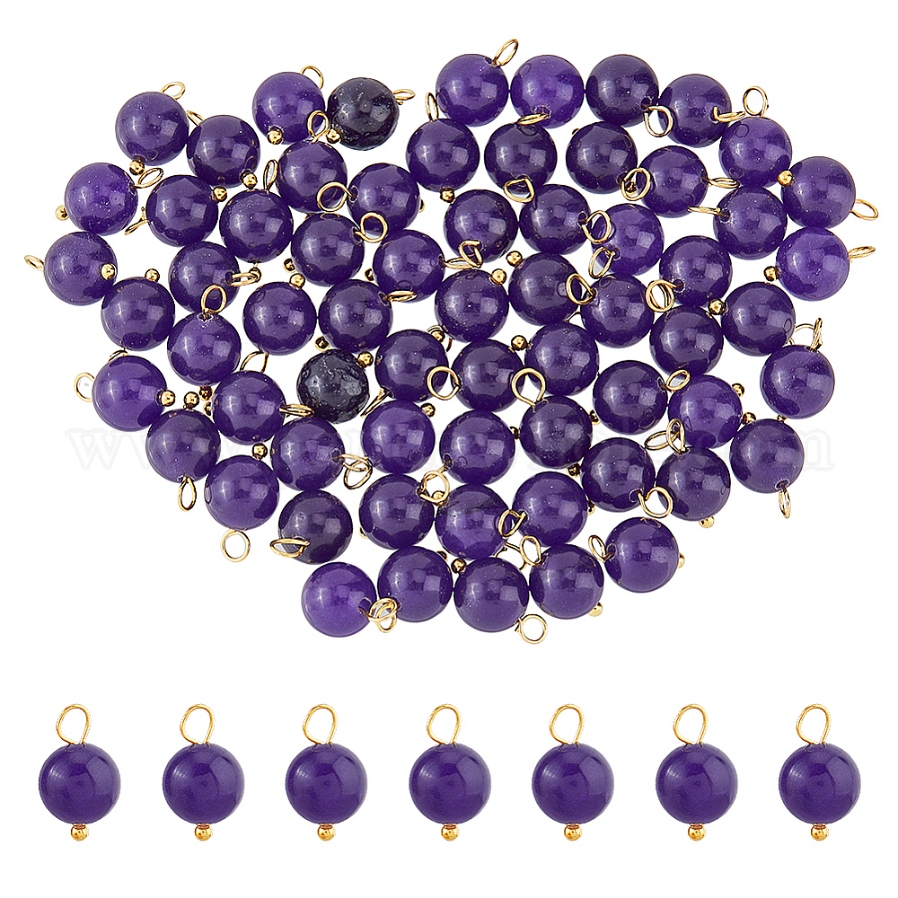 80круглые подвески из натуральных драгоценных камней, с позолоченными латунными петлями
