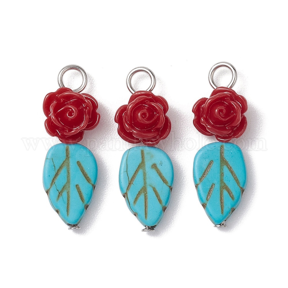 Подвески из окрашенной синтетической бирюзы и непрозрачной смолы, лист с подвесками в виде розы