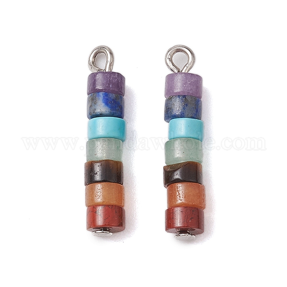 7 подвески в форме диска из смешанных драгоценных камней чакры и бисера, подвески-колонны с петлями из сплава, смешанные окрашенные и неокрашенные