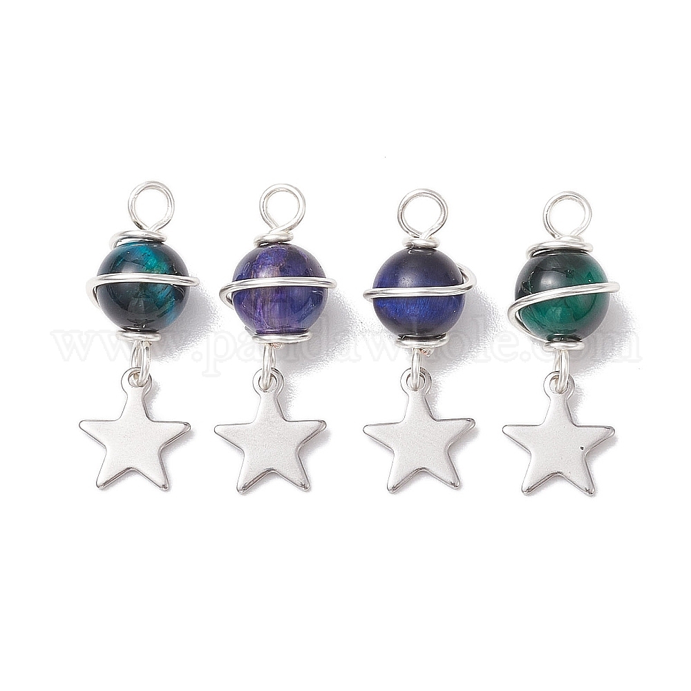 4шт. 4 цвета натуральный тигровый глаз (окрашенные и с подогревом) круглые подвески, 304 из нержавеющей стали звезды прелести