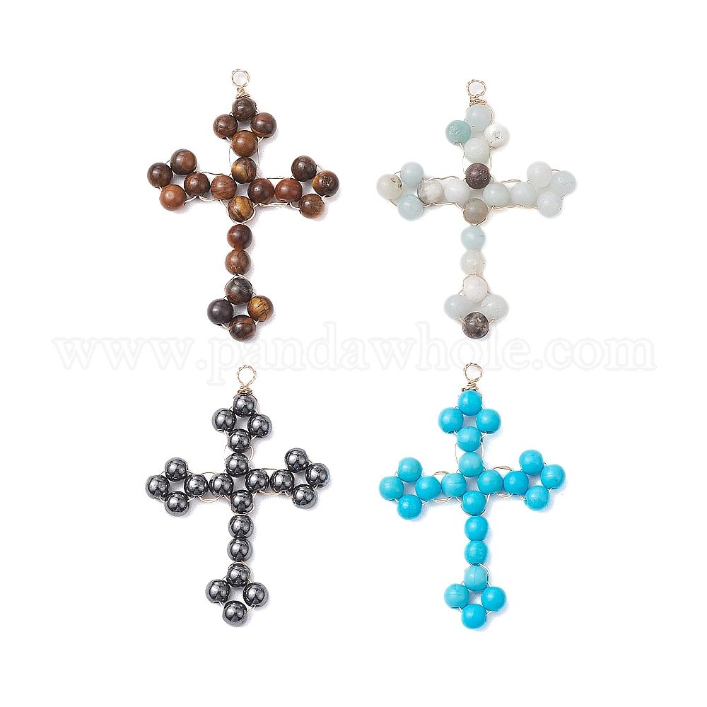 Круглые подвески из медной проволоки со смешанными камнями, подвески с крестом флери, золотые